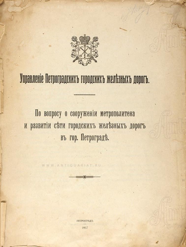 По вопросу о сооружении метрополитена и развитии сети городских железных дорог в г. Петрограде